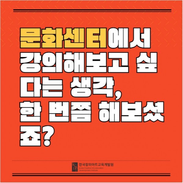 - 본 게시물은 한국창의아트교육개발원 에서 제공한 자료로 개인정보를 포함하고 있으며 임의유포, 수집, 배포가 금지됩니다.