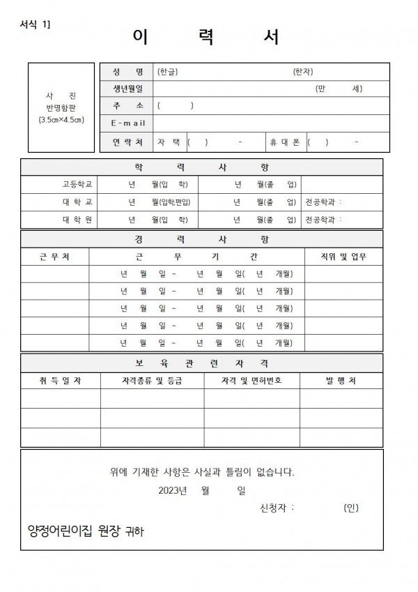 - 이전글1대 1방문보육교사 및 정교사 모십니다. 23.06.08